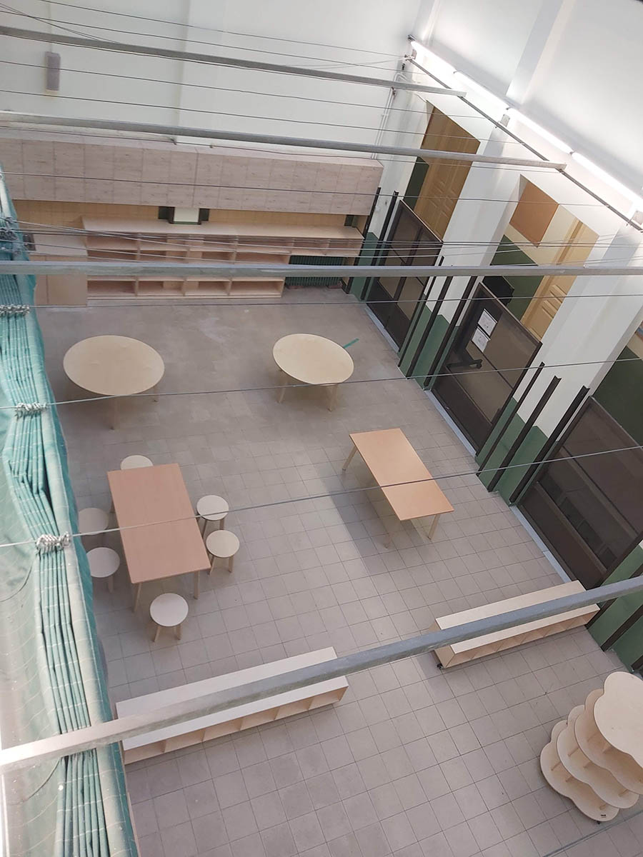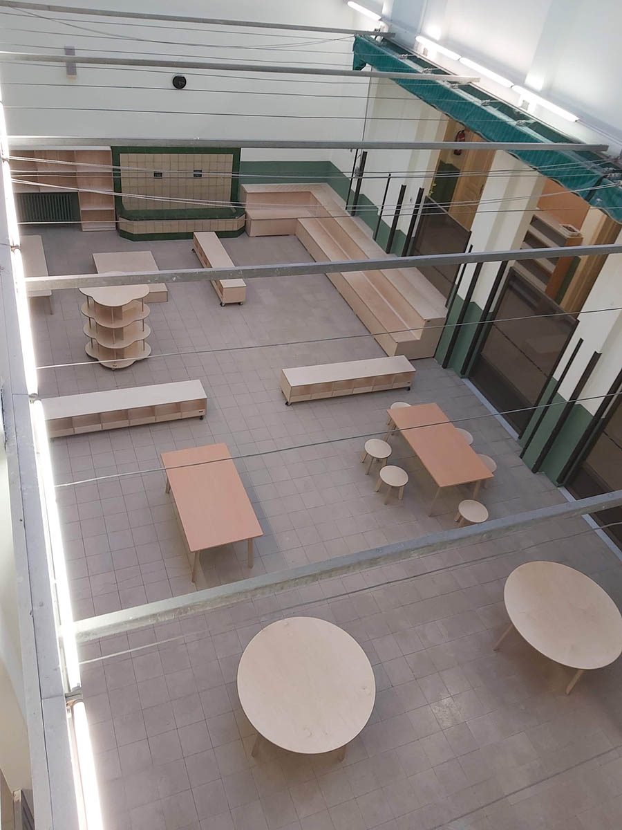 El plantejament d’aquest projecte va ser crear un espai molt aprofitat, que fos polivalent en una zona amb molta llum. On els nois poguessin fer activitats de lectura, ciències, entre d’altres. I vàrem dissenyar la següent proposta: